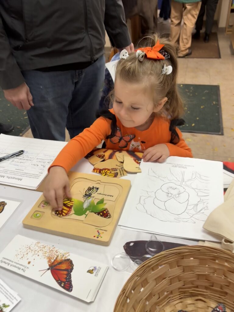 Despite the inclement weather, we had a wonderful time at the 2025 Fall Fest. The River Trails staff was kind enough to locate us indoors! We handed out a flat and a half of milkweed plugs and many butterfly pins, bookmarks, and coloring sheets. It was a pleasure to speak with the children and their parents. Our monarch puzzle was put to good use!